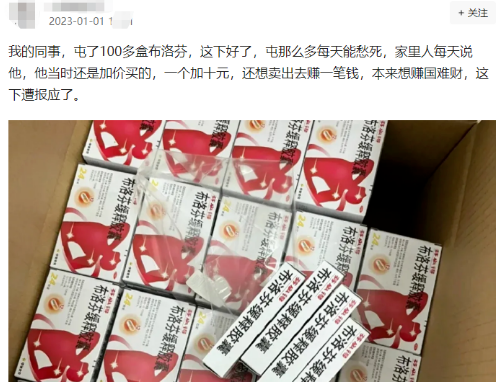 这位囤了100多盒布洛芬,还是加价买的,现在每天愁死了。