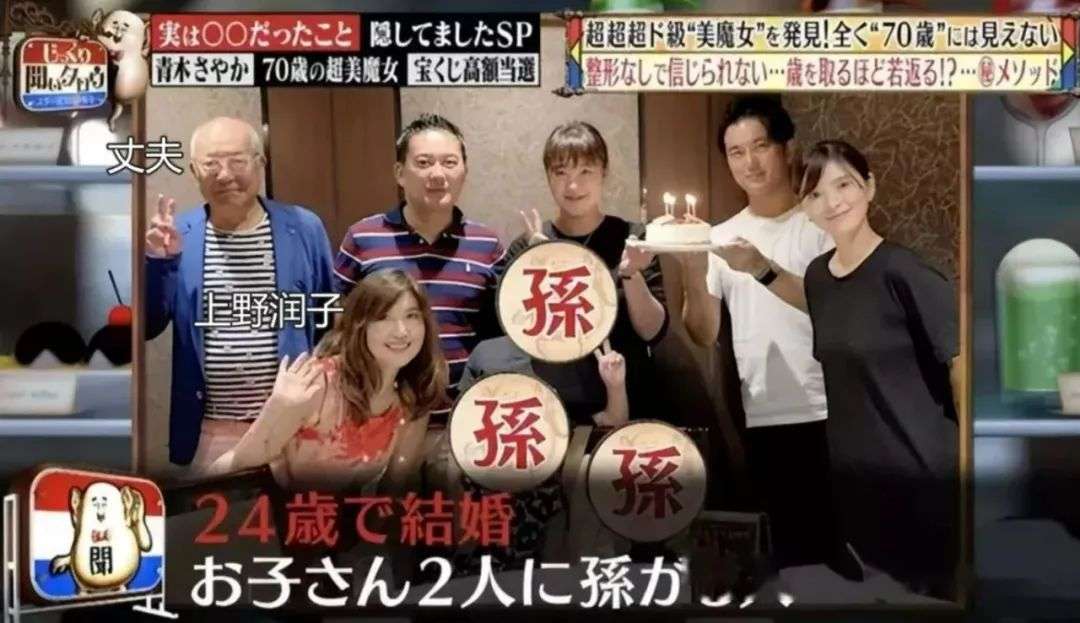 面容极为年轻的她和家人画风颇大,曾有日本主持人笑称她和丈夫在一起,简直就像是爷孙照。