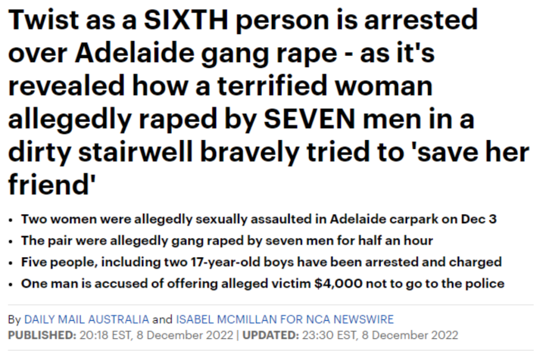 2022年12月4日,澳洲阿德莱德发生了一起耸人听闻的性侵案件。