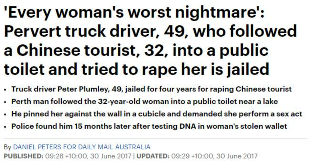 此前,还有华人女子在隐蔽角落——公厕内遭到性侵,