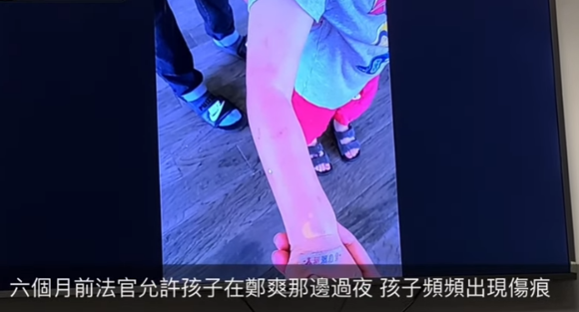 他说郑爽一开始每星期有几个小时探视时间,那时候孩子正常。六个月前,法官允许孩子可以在她那边过夜就发生了状况,孩子就频频出现疑似“伤痕”。他表示这些紫色的痕迹他不确定是什么,是伤还是孩子画的画?