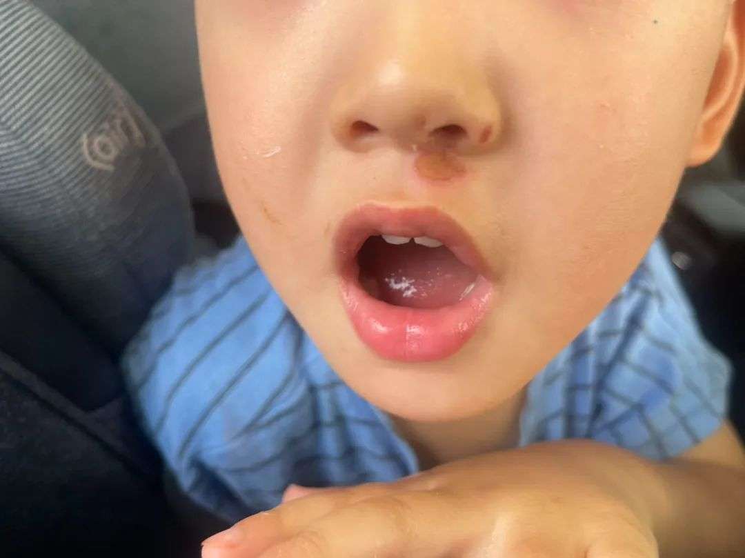 在张恒发布儿子鼻子受伤视频,男孩鼻子处出现类似烟疤状的伤痕。