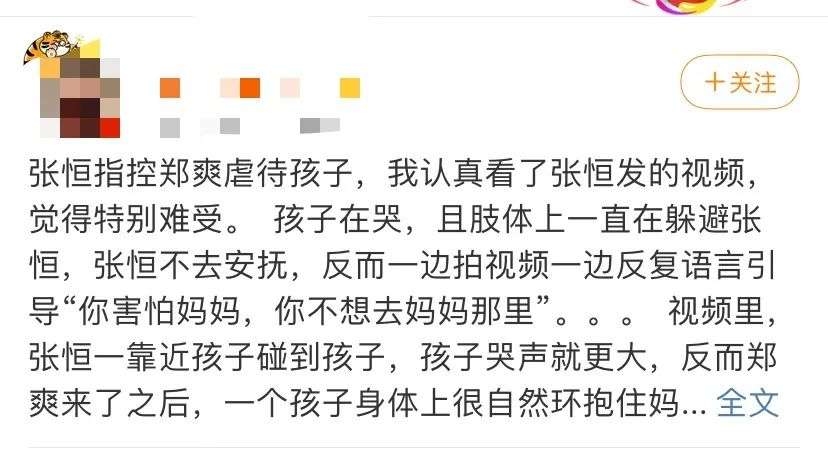 在另外一段视频中,张恒对孩子称,妈妈到门口了,要去妈妈那里了,两个孩子都哭喊着喊着:不要,怕妈妈,我要奶奶。