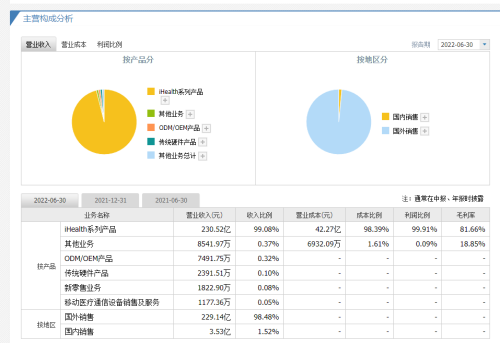 九安医疗美国子公司(iHealth Labs.Inc)半年经营的构成情况