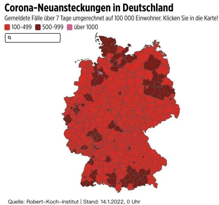 截至2022年1月14日,德国新增确诊病例92223例,单日新增感染连续第三日刷新历史最高纪录