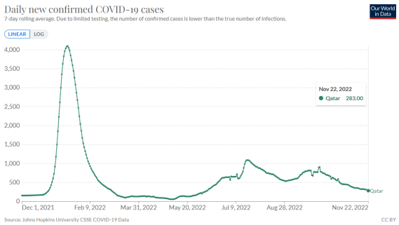 令人惊喜的是,根据卡塔尔卫生部公布的数据,卡塔尔在世界杯后,并没有多少人因新冠住院,进ICU的人更是少之又少,这也侧面反映出卡塔尔本轮疫情的重症率很低。