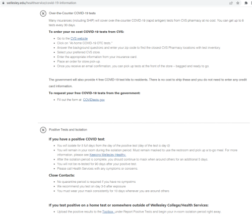 比如被誉为全美第一女子学院的韦尔斯利女子学院(Wellesley College),官网上显示的防疫政策是这样的: