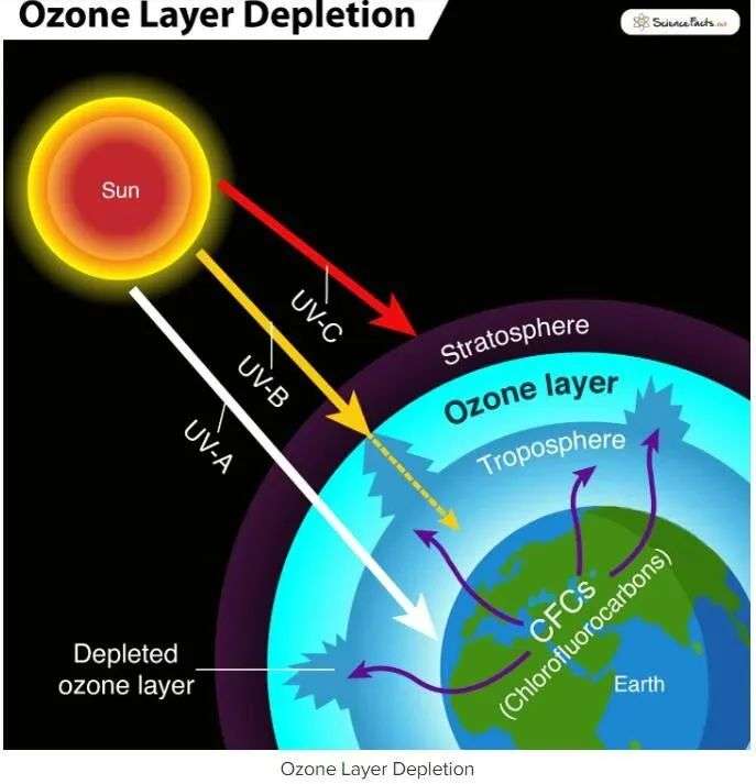 众所周知,臭氧层是地球大气层的薄薄部分,它吸收了大部分来自太阳的紫外线辐射。当臭氧层出现空洞时,这种强烈的辐射就会直达地表,对人类和其他生物造成潜在伤害。