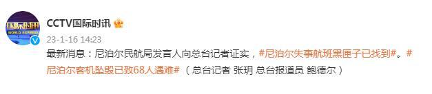 最新消息:据新德里电视台16日援引印度亚洲国际新闻通讯社报道,尼泊尔官方表示,已找到载有72名乘客的尼泊尔雪人航空公司失事客机的黑匣子。