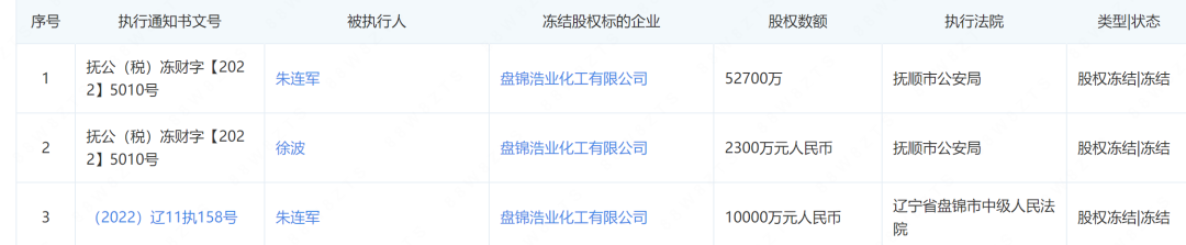 企查查显示,该公司共有两位股东,而目前两位股东持有的所有股权均被抚顺市公安局冻结,持续时间为2022年10月13日至2023年10月12日。
