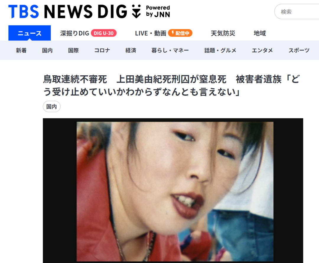 2009年,日本鸟取发生的“离奇连环死亡”案,案件罪魁祸首——上田美由纪,于14日晚7点左右被判定死亡。死因:食物堵塞呼吸道导致窒息——简称:噎死。