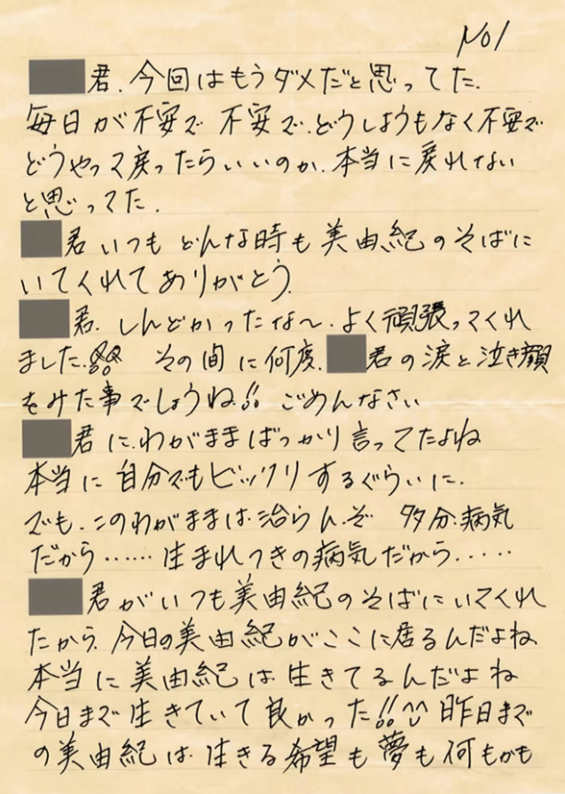 “是因为XX君的存在,才有现在的美由纪。是因为有XX君在这个世间,我才觉得,能够活到现在,真是太好了。”