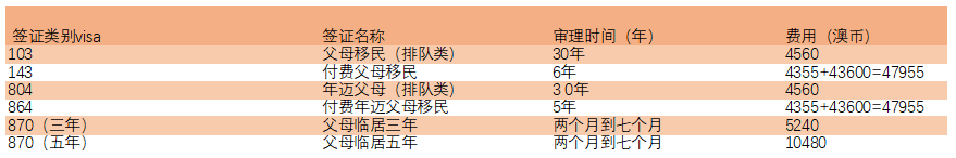 排队类父母移民签证类别:103非年迈排队父母签证, 804年迈排队父母签证,等待期大概30年。