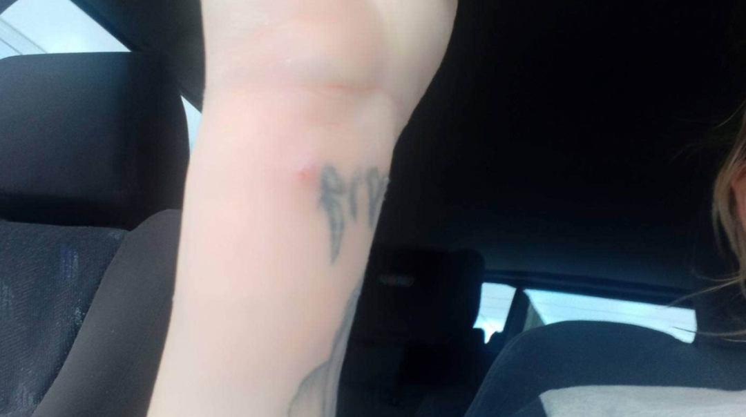 这位名为Renee Peck的女士目前正怀着她第五个孩子,已经21周了。上周一的早上,她在位于惠灵顿Upper Hutt的家中洗手时,发现自己的右手腕上出现了一个小小的咬痕。