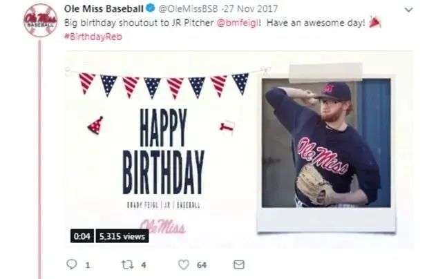 时间来到2017年,密西西比大学棒球队想要在Twitter上祝小哥生日快乐,他们@了小哥的账号送上祝福。