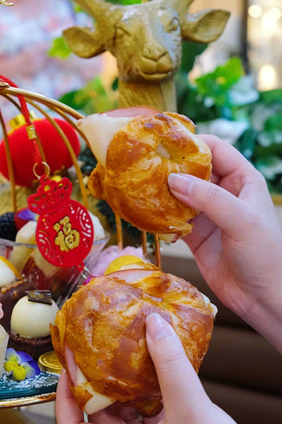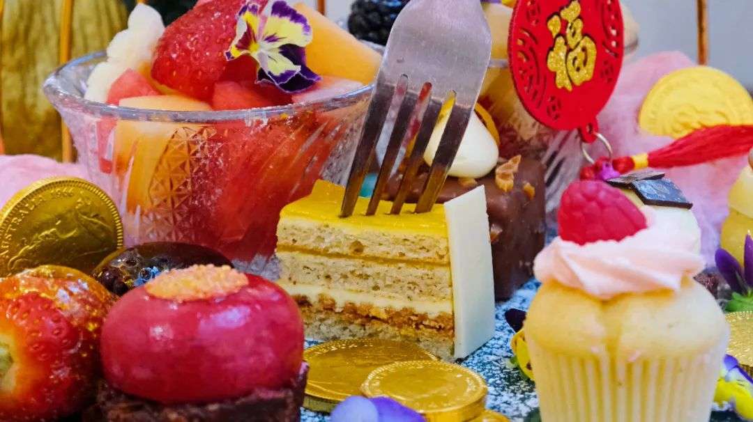 西式甜点搭配颜值爆表的中式茶饮!细心的饱贝还会发现,竟然还有糖葫芦!每个细节都拿捏到了春节的仪式感!属实有有点6!