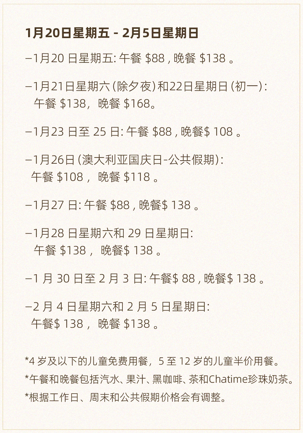 豪华新年自助菜单上线
