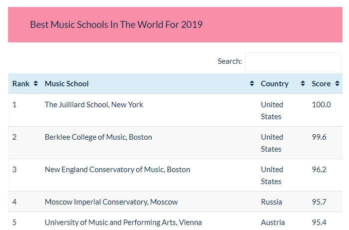 但在其他音乐院校榜单上,伯克利可谓是名列前茅。
