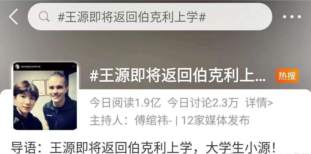 一石激起千层浪,很快#王源即将返回伯克利上学#的词条就上了热搜。