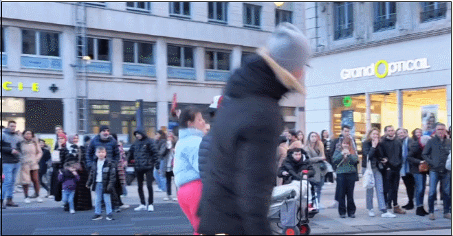博主@碰碰彭碰彭 在法国街头亲自传授兔子舞秘诀,小碎步怎么蹦,胳膊怎么使劲儿,争取让大家练几遍就能融会贯通。