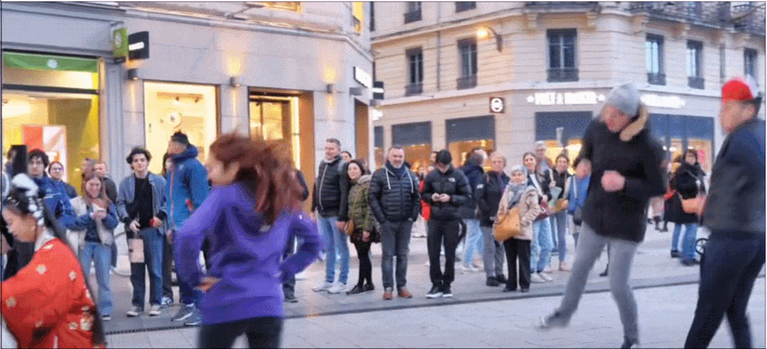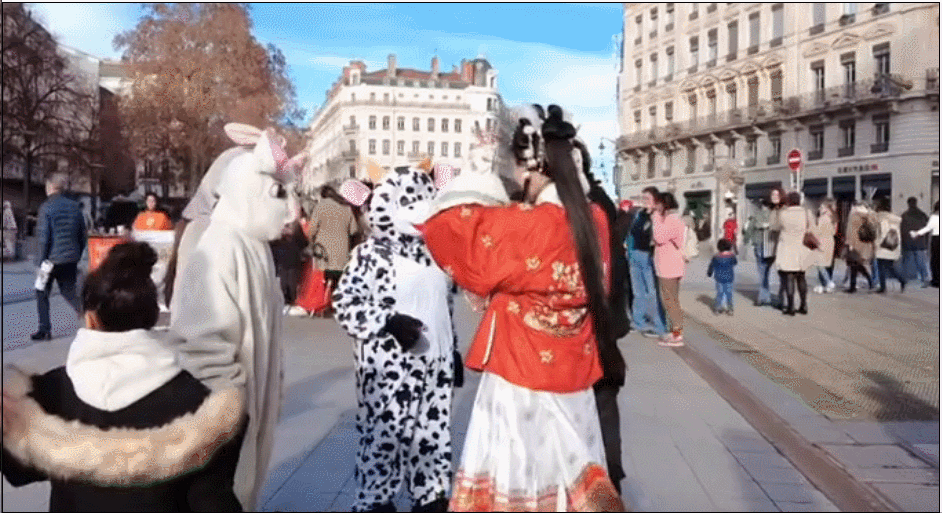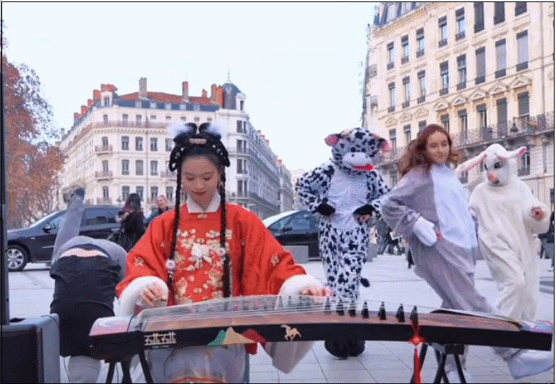 街头快闪配上优雅古筝,年味儿就这么在法国街头浓起来了。
