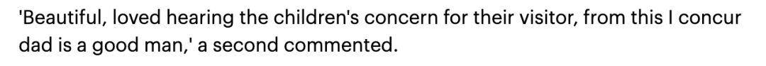 另一条评论说:“漂亮,喜欢听孩子们关心他们的‘客人’,真是一个好爸爸。”