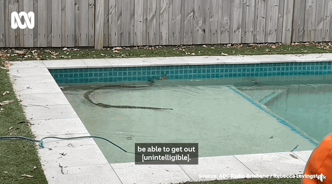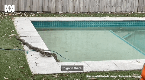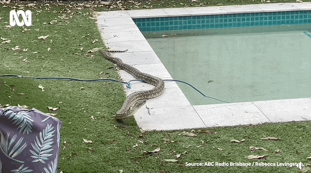 在他们的后院泳池里,一条巨大的蟒蛇慢悠悠地滑进水里,
