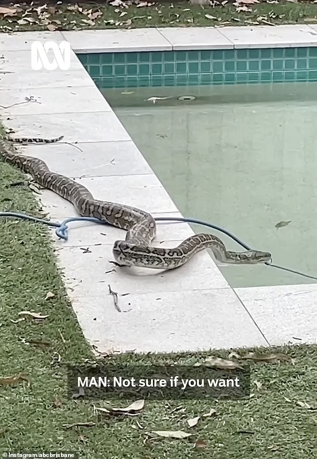 “这条蛇在我们的泳池里看起来更大了。”