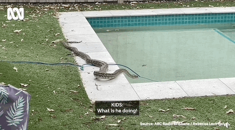 另一个孩子似乎还没有跟上节奏:“嗯,我们的游泳池里有条蛇?你说什么?”