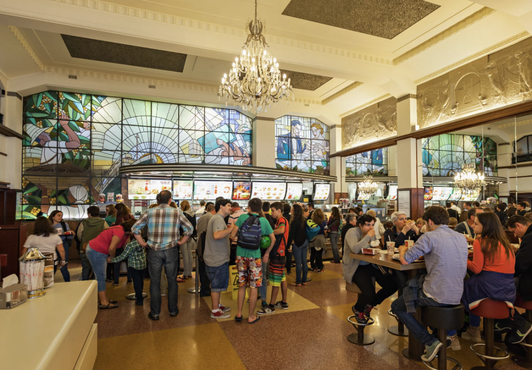 这里经常被描述为世界上最美丽的麦当劳,这个地点坐落在著名咖啡馆的旧 Cafe Imperial 大楼内。