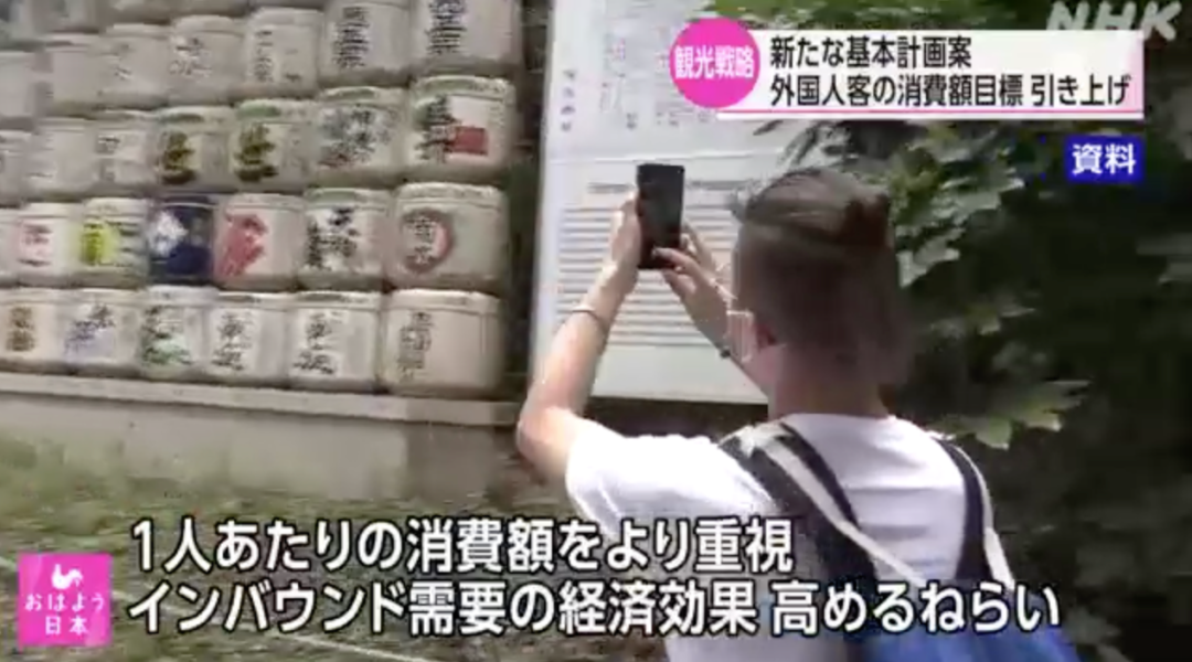计划中提出了将访问日本的外国游客消费额目标提高到每人20万日元的方案。