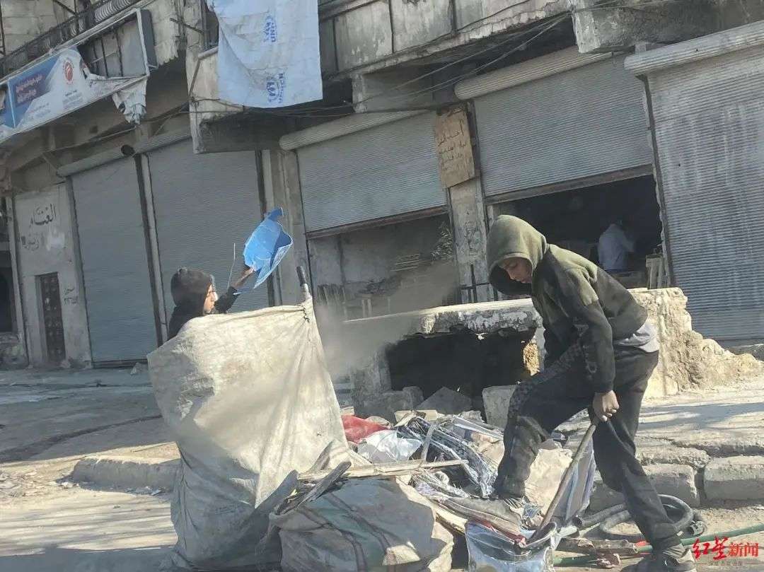 他还给红星新闻记者分享了几张照片。照片上,孩子们在街道里捡垃圾、围坐在地上。“他们就住在那个地方,有垫子(铺在地上),或者晚上随便拿点什么盖在地上。”他一边给红星新闻记者看照片,一边介绍当地孩子的情况,“还有一两个小孩在捡垃圾,在废墟刨一些铁之类的东西,拿去卖到专门收铁的人那里去。实际情况比我们说的这些要糟糕很多很多倍。”