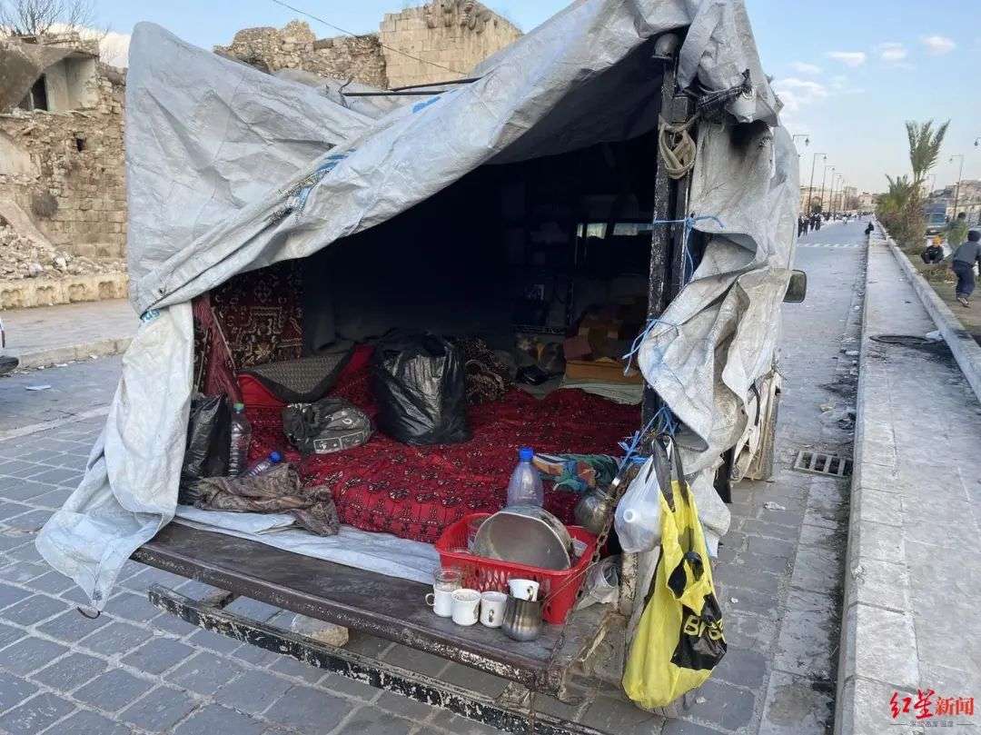 “一个避难所里面住了200多家人,大约有1500人。实际上那里没有电、没有水。里面有两个区域,男女是分开的。女性和小孩住的(区域)有门,晚上可以关起来(抵御寒冷)。但是男性住的区域都没有门,非常冷。”刘成告诉红星新闻记者,阿勒颇地区的气温晚上低至零下5度到零下10度。