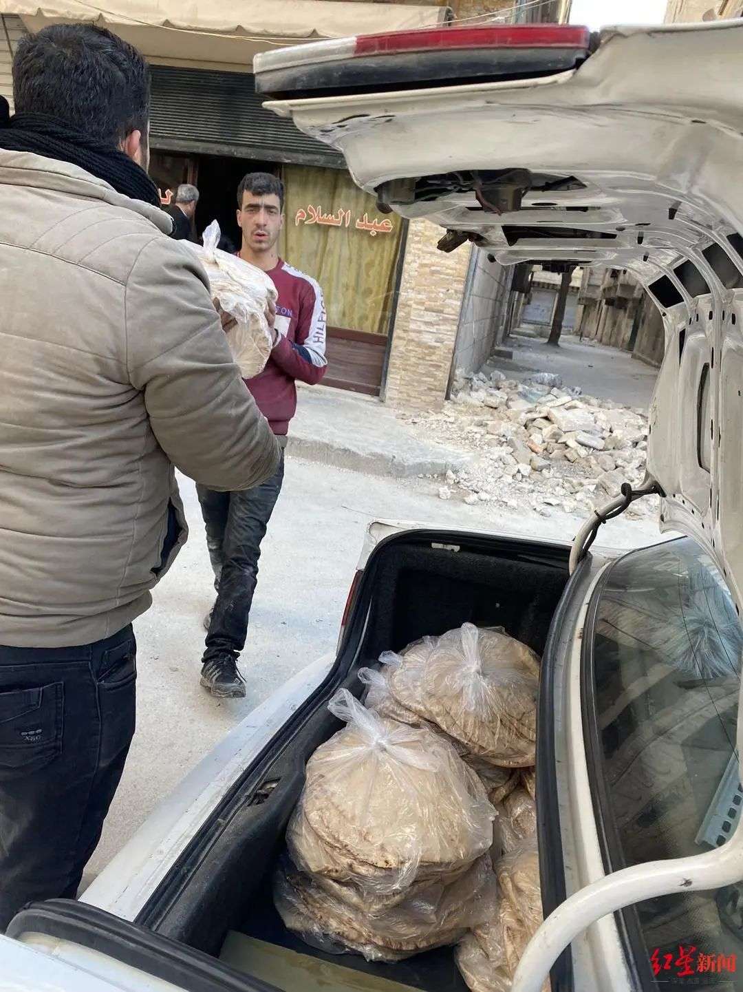 在收到许多中国民众的自发捐助后,刘成和当地华商购买了物资,分发给了阿勒颇重灾区的幸存民众。据刘成说,他到阿勒颇4天了,期间看见很多房屋部分倒塌,废墟堵住街道,救援人员一直在用挖掘机清理道路。他向红星新闻记者展示了他拍摄的重灾区街道。“这个(重灾区)就是贫民区,他们的街道非常窄,附近房子都倒塌了。”他说,“地震之前,(叙利亚)打内战,很多房子都打烂掉了,附近的那些人几乎就住在废墟里面。地震之前,他们就非常穷。”