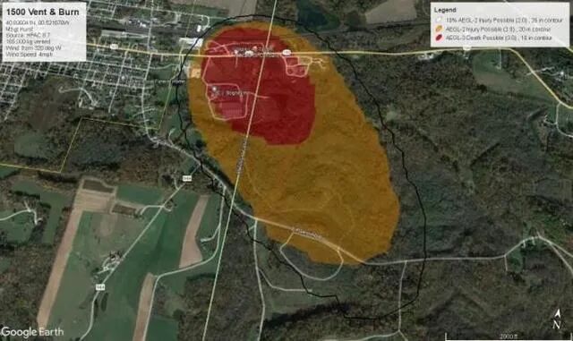 事故发生地就位于俄亥俄河(Ohio River)的支流附近,泄露的毒气将直接污染水源。