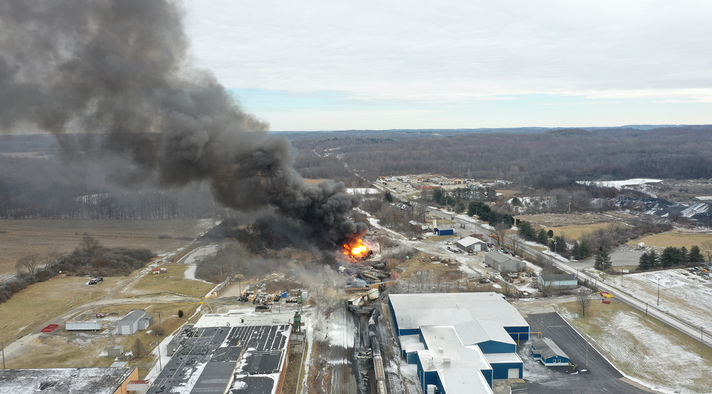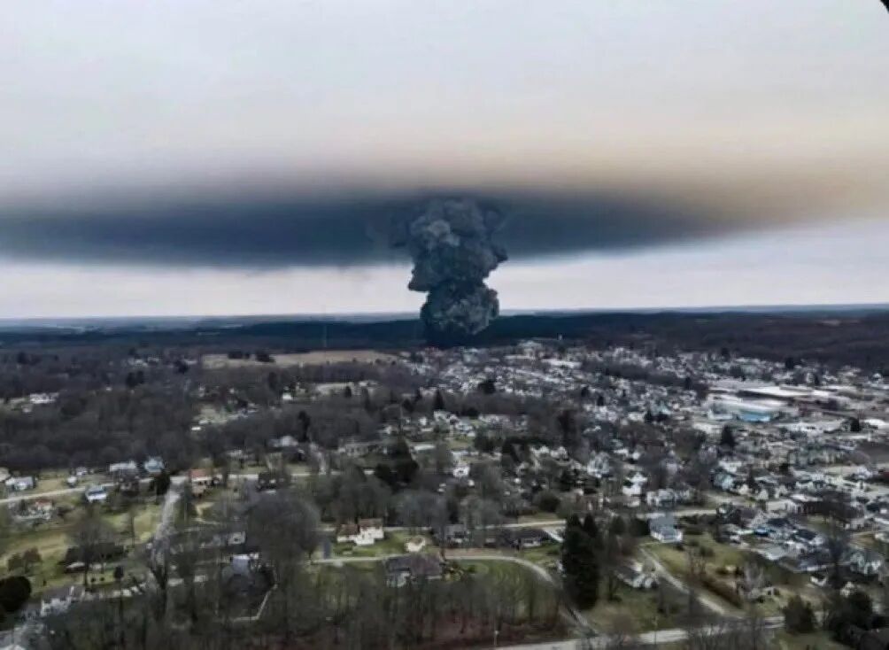 事情的起因在当地时间2月3日,一列运输危险化学品的火车在美国的俄亥俄州脱轨,随后燃起大火并爆炸。