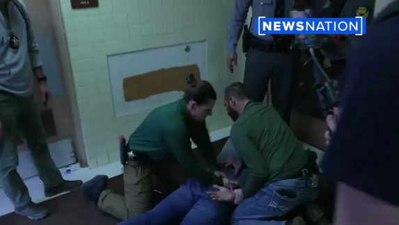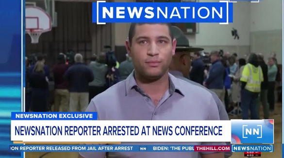 在新闻发布会现场,媒体“Newsnation”的记者Evan Lambert在报道时被警方粗暴逮捕,关押5个小时后才被释放。该记者表示,他遭到逮捕是因为他当时正在直播,告诉民众他们应该知道的事实真相。