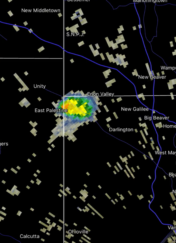 据报道,出事的货运列车共有超过100节车厢,其中约50节车厢在俄亥俄州东部距离宾夕法尼亚州很近的小镇东巴勒斯坦城(East Palestine)脱轨,20节车厢装有有毒物质,有14节车厢装载了剧毒物质氯乙烯,超过10万加仑(约等于37万升)的剧毒物质已经泄露。