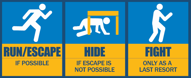 如果不可能撤离,找一个地方藏起来使枪手不能找到你。