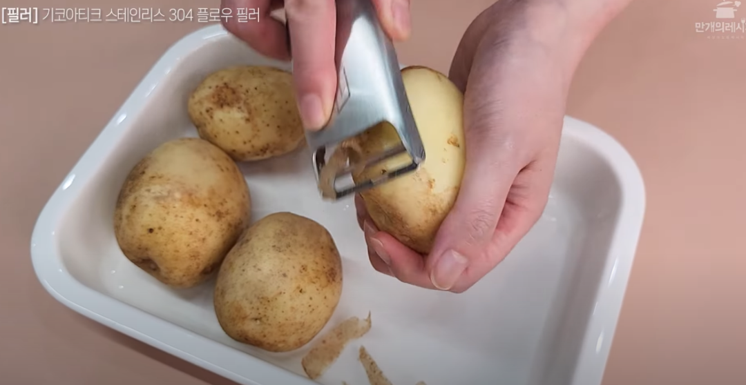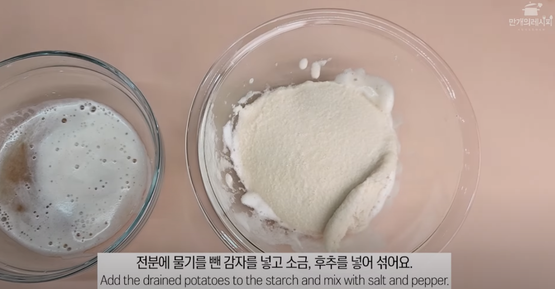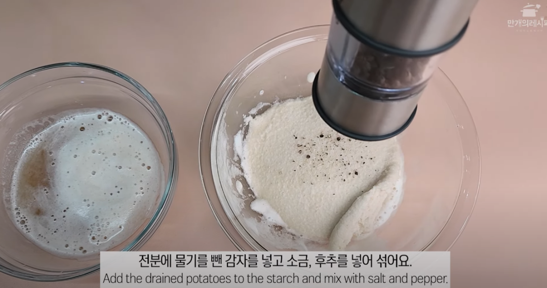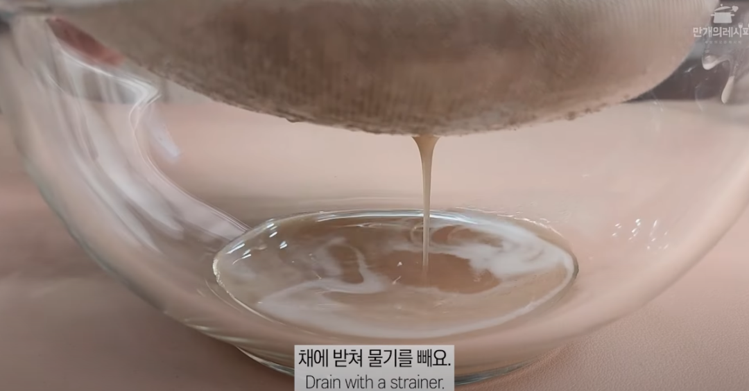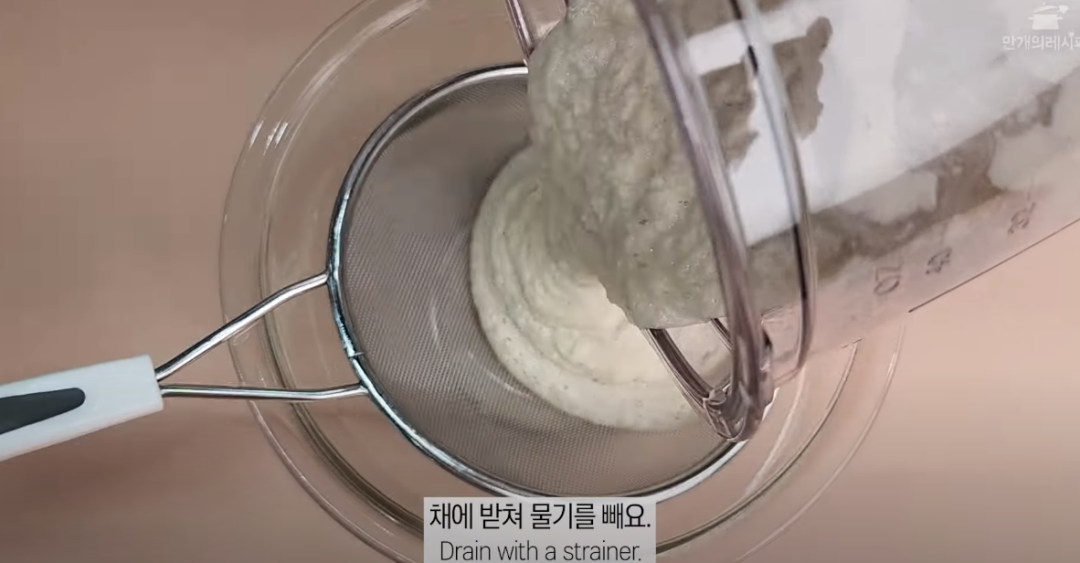 3. 用滤网过滤土豆汁里的残余土豆渣和水分