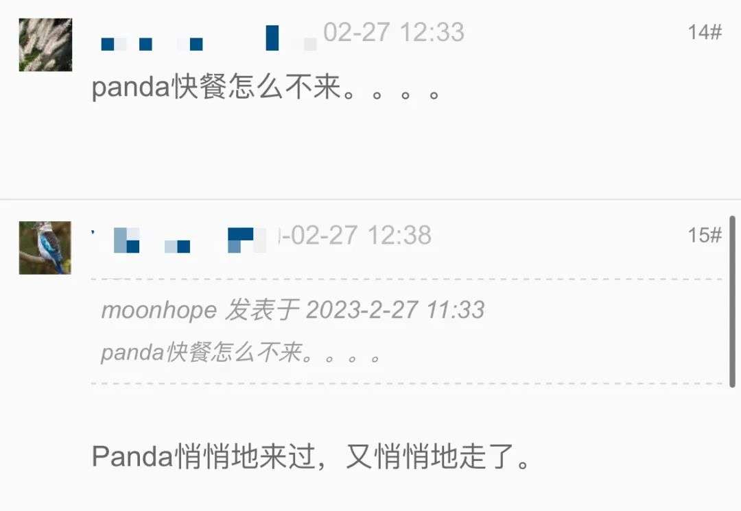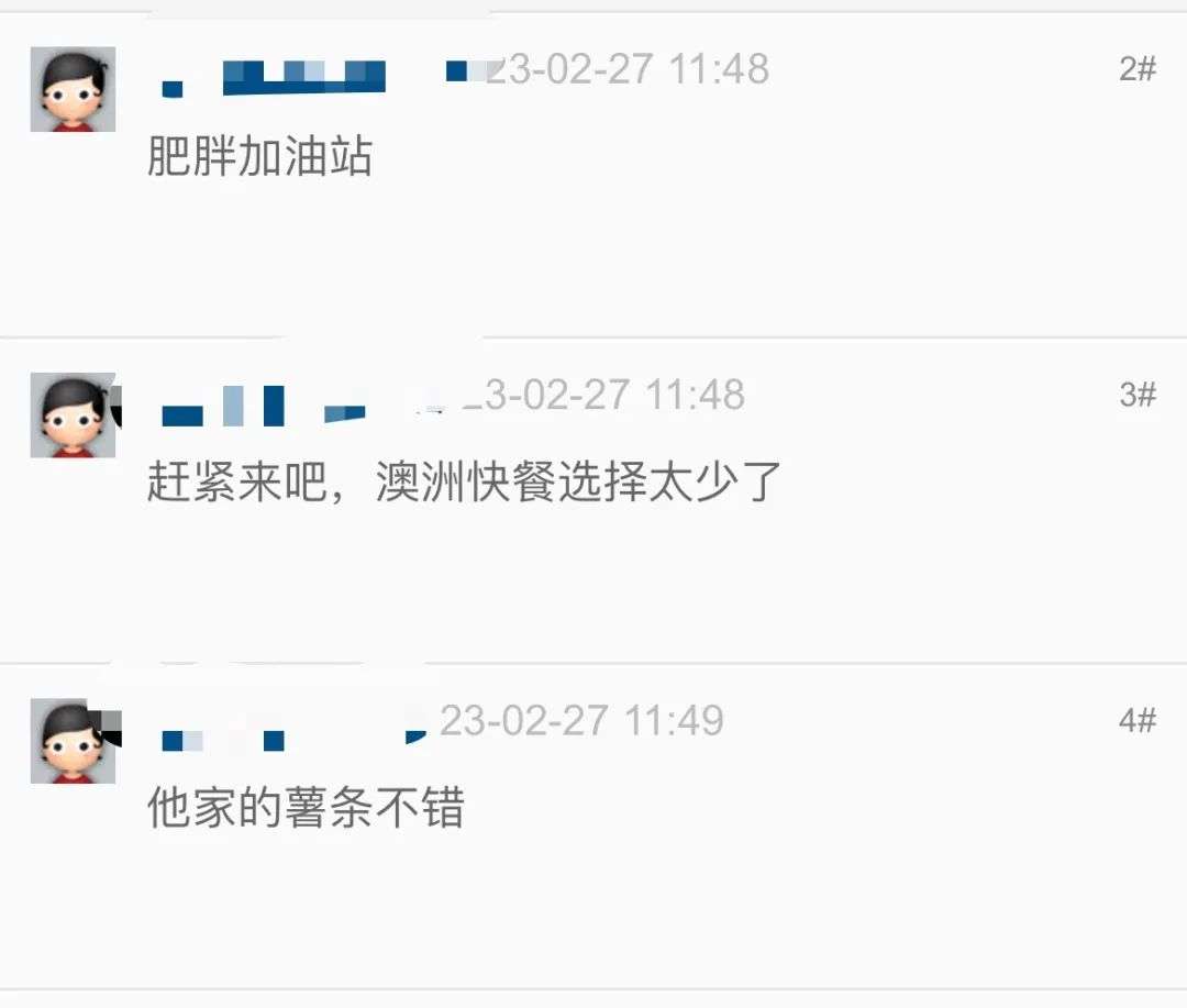 还有网友希望“panda快餐”也来澳洲,另一位网友说其实panda来过,又悄悄的走了。