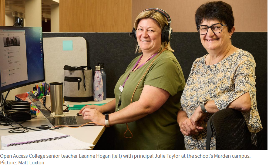 Open Access College校长 Julie Taylor 说,公立学校的入学人数已经减少,现在有 190 名教师和支持人员为近 4300 名学生提供虚拟教育。