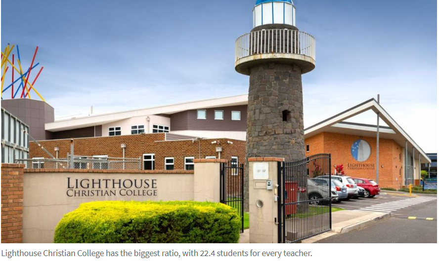 师生比最大的学校是Lighthouse Christian College Cranbourne,一个老师要应付22.4名学生。