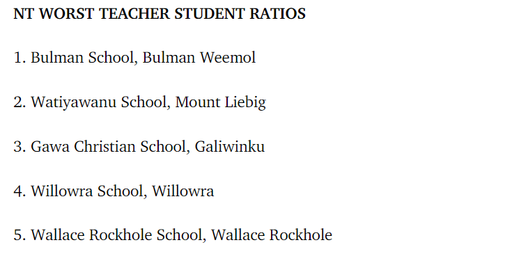 好消息是,大约三分之二的北领地学校(包括小学和中学)分别低于全国 14.5 :1和 11.9:1 的师生比。