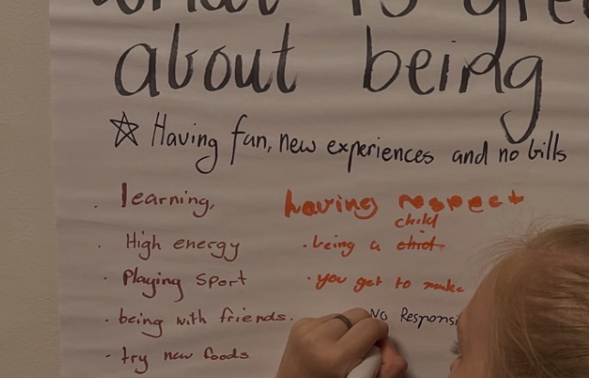 “自2021年以来,我们已经发展到16名学生。每个人都有强烈的归属感,喜欢来上学。例如,我们为有额外需求的学生在教室里散布了秋千,这样他们就能在需要时更好地集中精力,调节自己。”