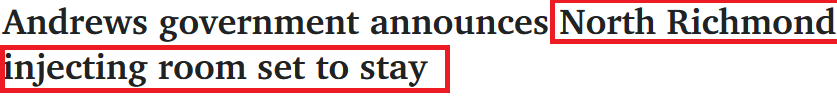 吸毒室设在North Richmond,因为那里是墨尔本毒品交易的中心所在。