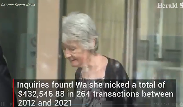 Walshe 承认了 10 项盗窃罪,还有一项通过欺骗获得经济利益的罪名,