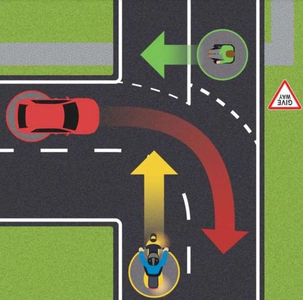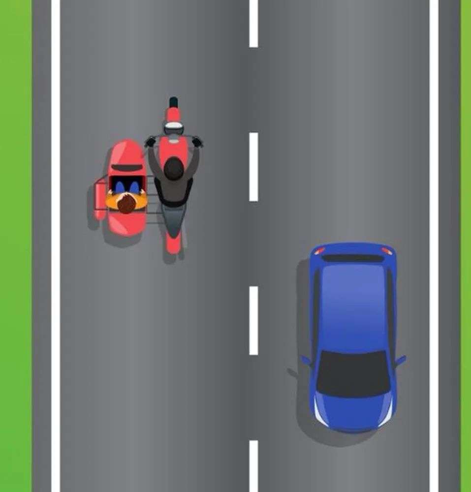 上图中所有摩托车手的行驶速度都低于30公里/小时,但你知道哪两个司机违法了吗?