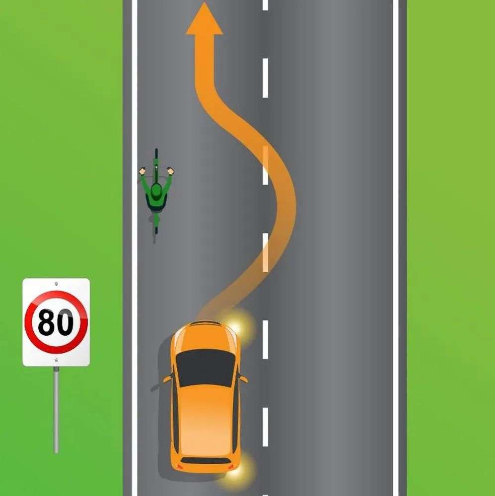 如果在限速60公里或更少的区域内,驾车者在超过骑自行车的人时必须保持一米的最小距离。