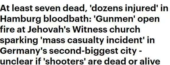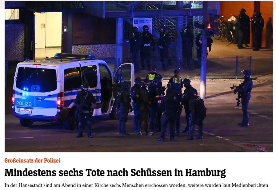 汉堡市市长Peter Tschentscher也立马发声:这起事件令人震惊,我在这里向遇难者家属表达最深切的哀悼,当局正在全力追捕枪手!